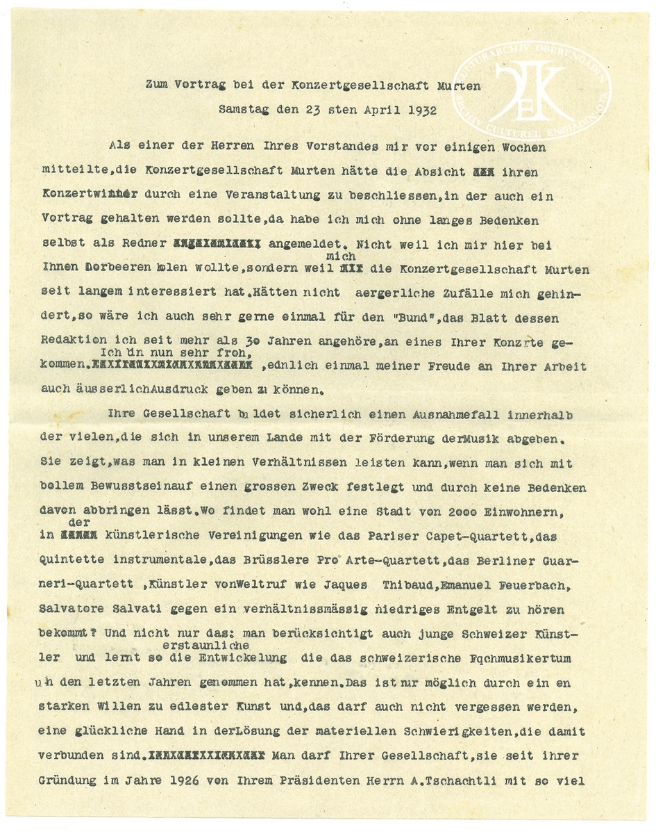 - Bundi, Gian: «Beethoven», Vortragstyposkripte und Skizzen, 15 Seiten. Vortrag gehalten am 23. April 1932 für die Konzertgesellschaft Murten und am 17. Oktober 1920 für die Beethovenfeier des Bildungsausschusses der Arbeiter-Union in Bern.