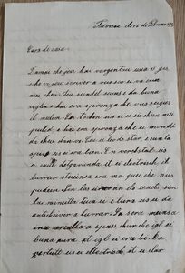 Brief an die Familie von Georg Riedi, verfasst in romanischer Sprache in Davos; 1908 ?; 5Glückwunsch Kärtchen; Photographie schwarz weiss mit Personen auf Liegestühlen (Sanatorium in Davos?, gehört evtl. nicht zum Brief)