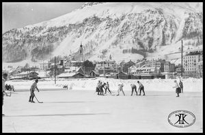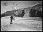 Diverse schwarz-weiss Negativ Fotografien auf Glas und Zelluloid zu Winterliche Stimmung und Wintersportarten. Zauberlichen Winterlandschaft. Samedan Cristolais mit Blick Richtung Pontresina. Raureif beim Inn. Survih - Skifahren am Ortsrand von Samedan. Tobogganing in Celerina. Winterfest Celerina. Celerina Hotel Cresta Palace. Wäscherin am Brunnen in La Punt.