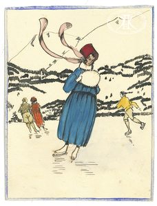 - Dame, an einem Blumenstrauch riechend (Text: «Frohe Ostern!», auf der Rückseite Brief von Maiti (= Maria Bass) an ihre Mutter )